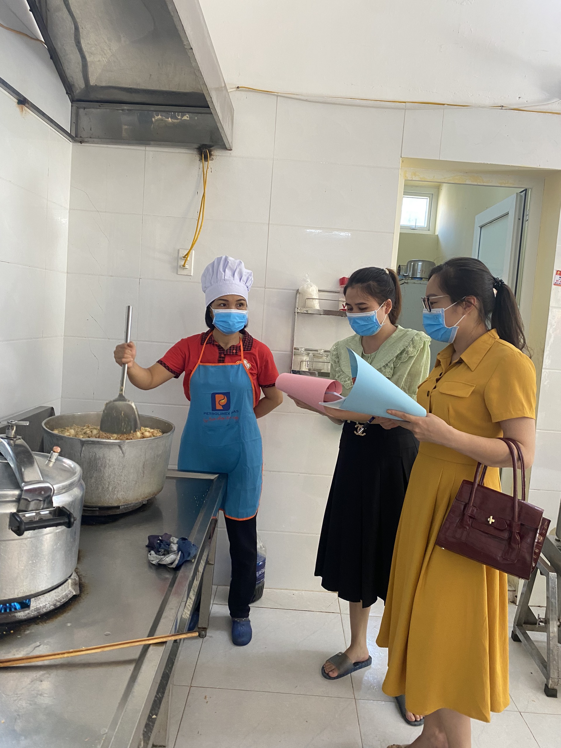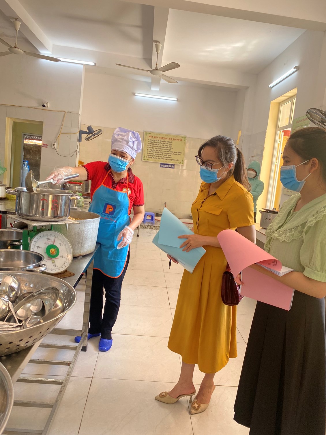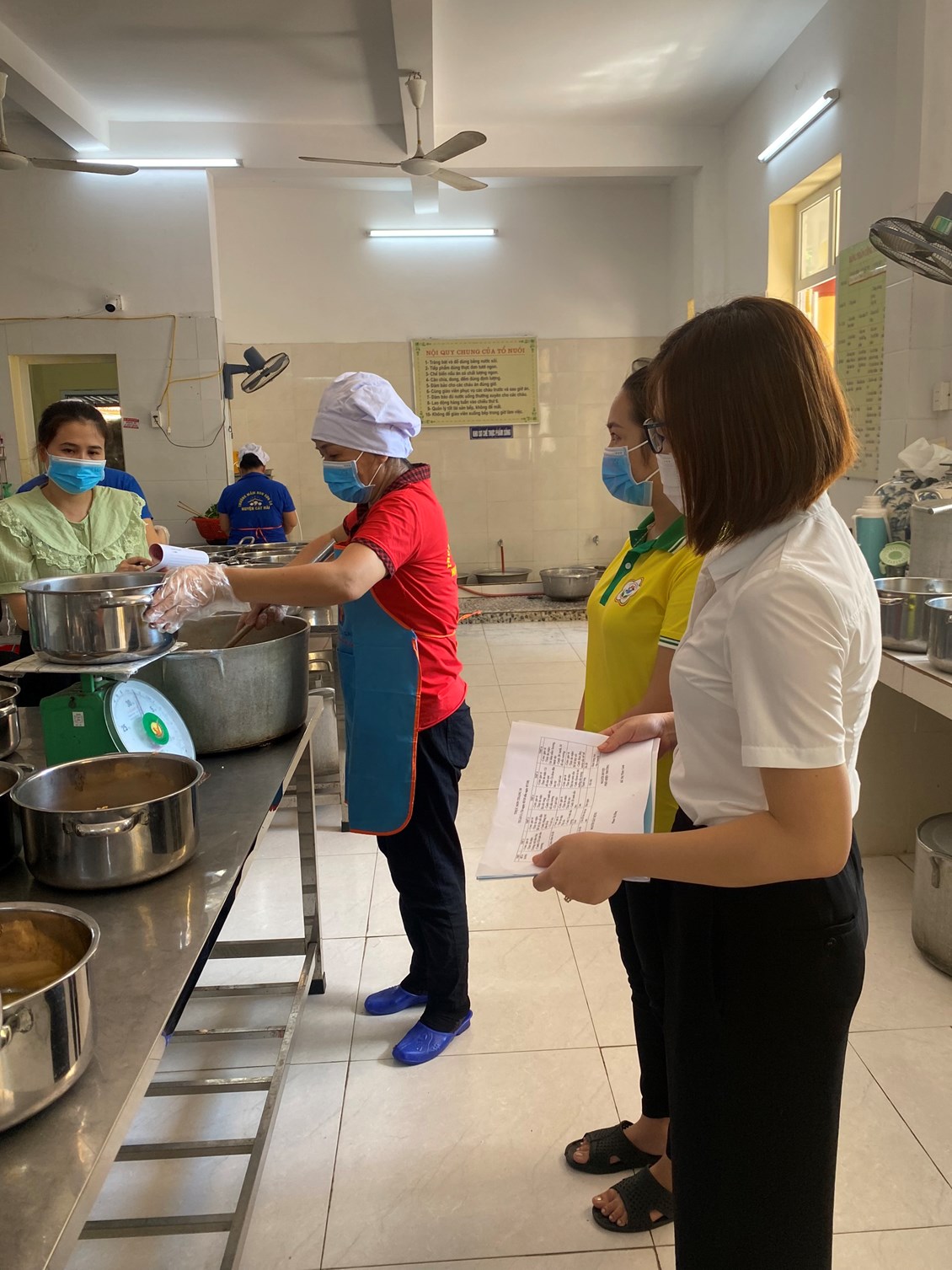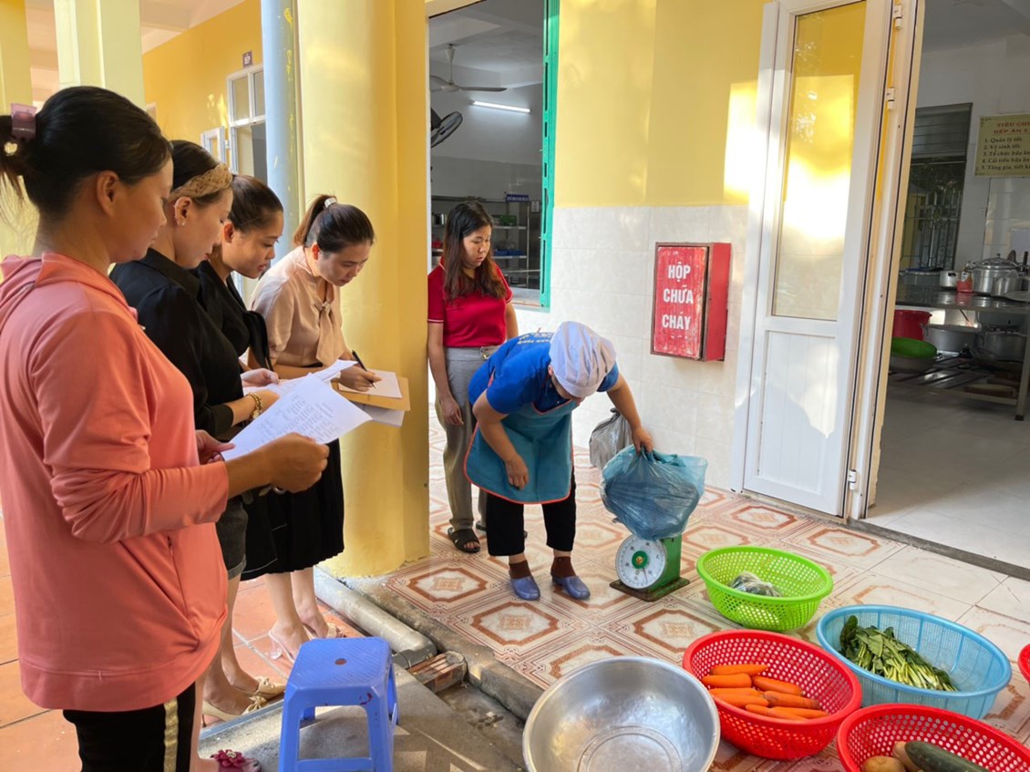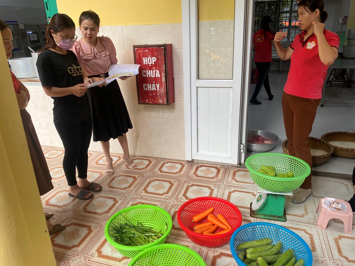 Nhà trường cũng thành lập ban giám sát đầy đủ thành phần: nhân viên nuôi dưỡng, đại diện giáo viên, thanh tra nhân dân, Ban giám hiệu và đại diện cha mẹ học sinh cùng giao nhận với nhân viên giao hàng, kiểm tra về chất lượng, số lượng thực phẩm, có ký xác nhận đầy đủ vào sổ giao nhận thực phẩm. Cùng với đó, 6 đồng chí cấp dưỡng của trường được tập huấn thường xuyên kiến thức về vệ sinh an toàn thực phẩm, kỹ thuật nấu ăn.