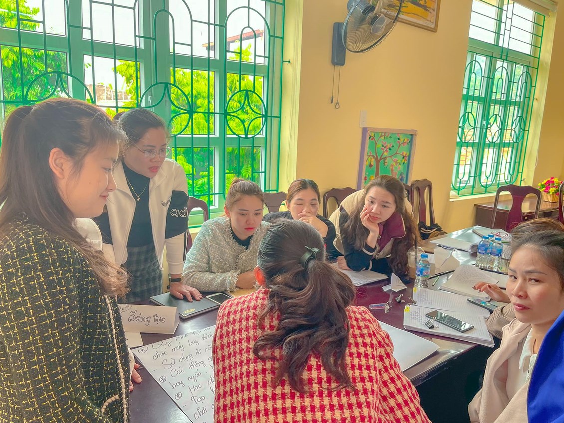 Hiểu được tầm quan trọng của giáo dục STEAM, Vừa qua, thực hiện sự chỉ đạo của PGD và ĐT#trường_mâm_non_Sơn_Ca đã tổ chức bồi dưỡng chuyên môn Vận dụng phương pháp giáo dục STEAM trong trường Mầm non. Tại đây, các giáo viên đã cùng nhau thảo luận, trao đổi, thực hành các nội dung để hiểu rõ về mục đích, ý nghĩa của giáo dục Steam.