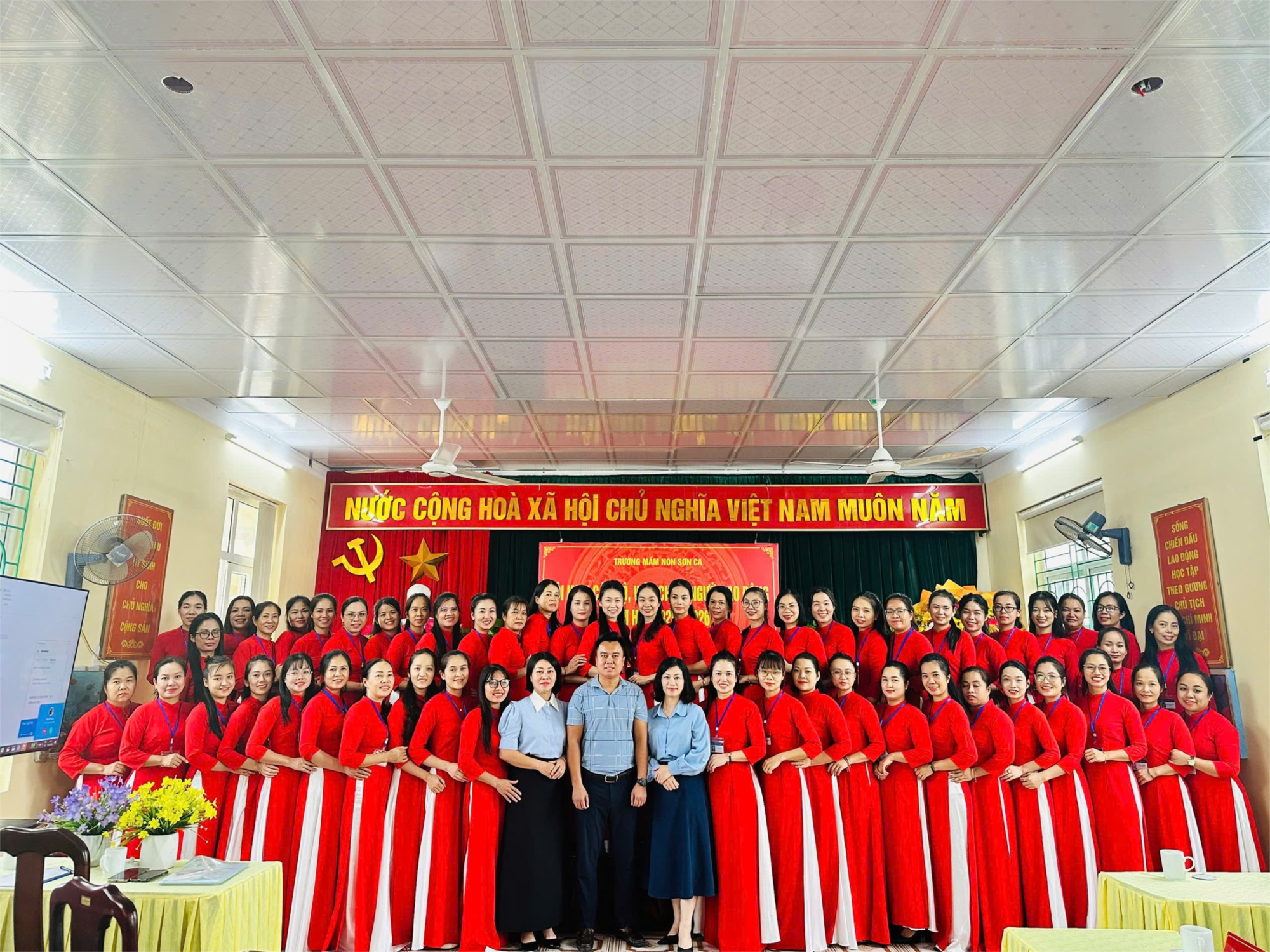 Giữ vững và phát huy danh hiệu “Tập thể Lao động xuất sắc”.Xây dựng môi trường giáo dục lấy trẻ làm trung tâm – an toàn, thân thiện, hạnh phúc.ới tinh thần “Dân chủ – Kỷ cương – Tình thương – Trách nhiệm”, Hội nghị Cán bộ - Viên chức - Người lao động Trường Mầm non Sơn Ca năm học 2025–2026 đã diễn ra thành công tốt đẹp, tạo khí thế thi đua sôi nổi, đoàn kết và tràn đầy niềm tin cho một năm học mới thắng lợi!