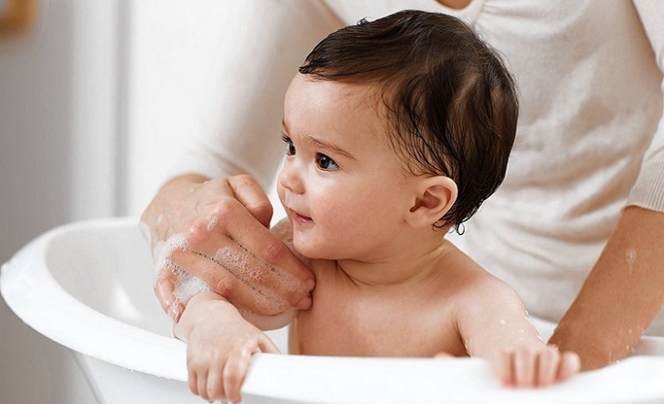 Trong mùa nồm cơ thể trẻ thường đổ nhiều mồ hôi khiến da luôn ẩm và tiềm ẩn nhiều nguy cơ gây bệnh. Mẹ cần chăm sóc cơ thể trẻ sạch sẽ bằng cách tắm rửa cho trẻ hằng ngày bằng các loại sữa tắm có tính sát khuẩn nhẹ.