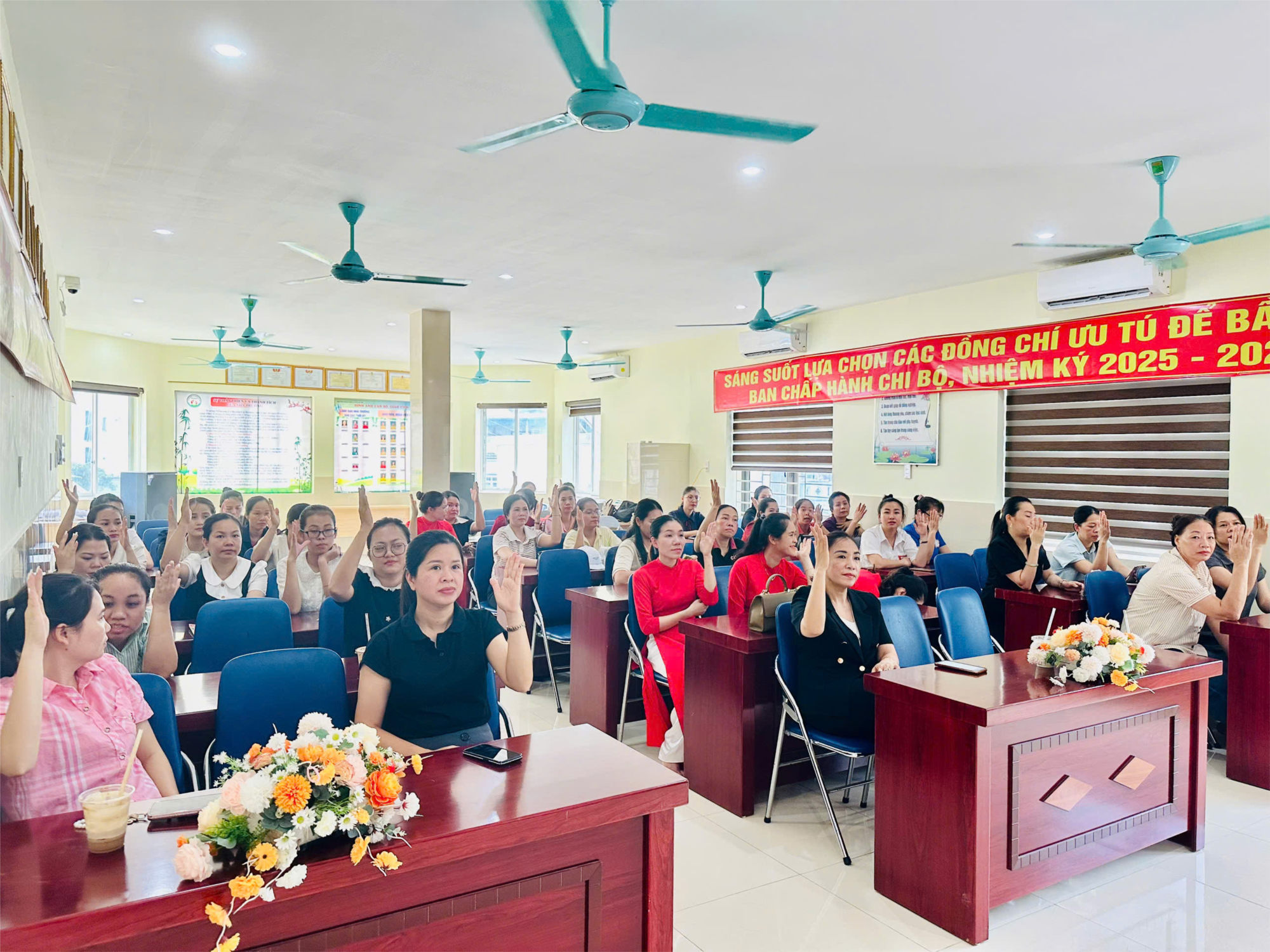 Buổi lễ kết nạp đảng viên đã diễn ra thành công tốt đẹp. Chi bộ trường Mầm non Sơn Ca quyết tâm phấn đấu đạt danh hiệu Chi bộ “Hoàn thành xuất sắc nhiệm vụ” năm 2025